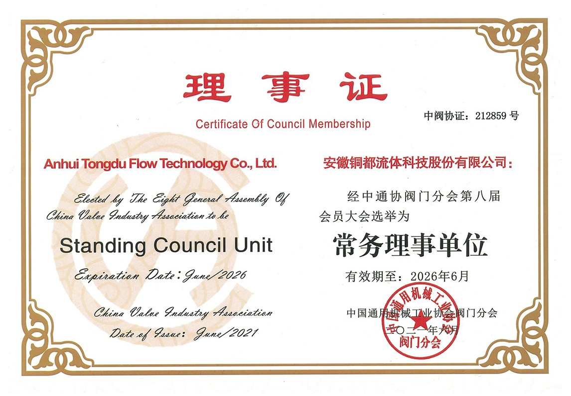 中國通用機(jī)械工業(yè)協(xié)會閥門分會常務(wù)理事單位