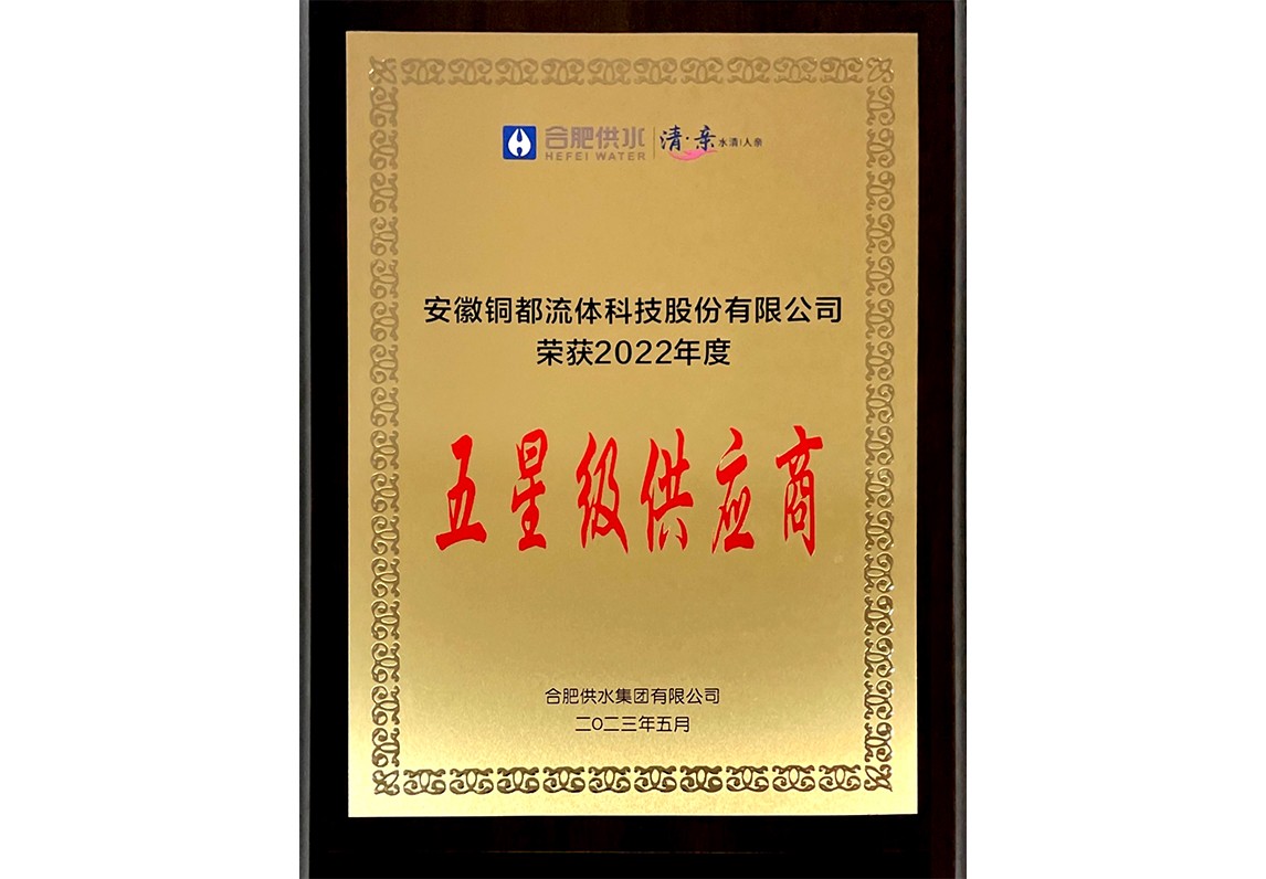 銅都流體2022年度合肥供水五星級供應(yīng)商