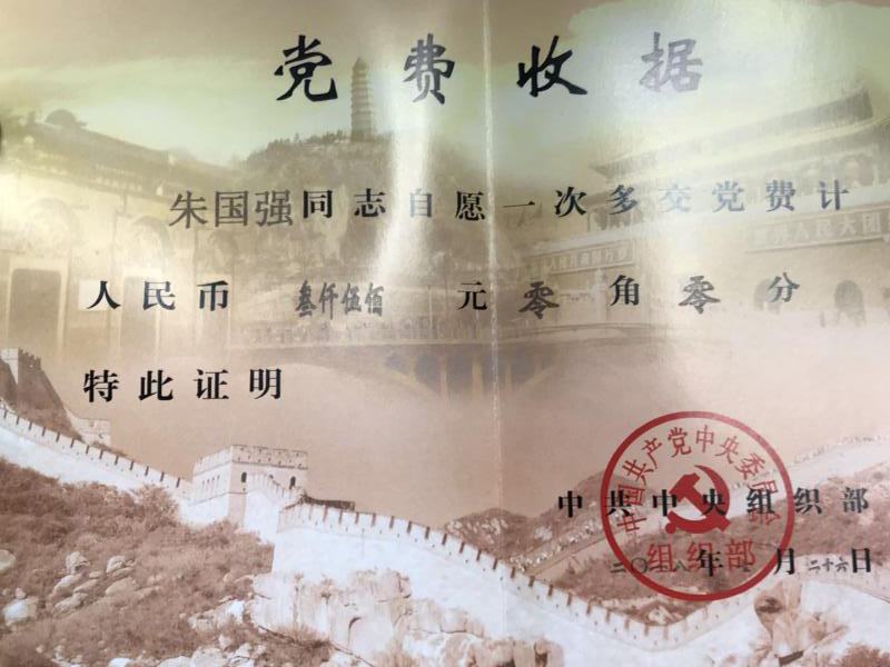 公司鉚焊車間員工、共產(chǎn)黨員朱國強(qiáng)同志,主動將自己獲得"銅陵好人"榮譽(yù)的獎勵金3500元,作為特殊黨費(fèi)上交,受到中央組織部的充分肯定和贊揚(yáng),并頒發(fā)特殊《黨費(fèi)收據(jù)》證書。