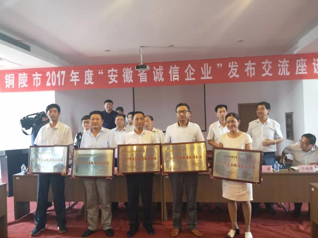 我市共有10家企業(yè)榮獲2017年度"安徽省誠信企業(yè)"稱號。