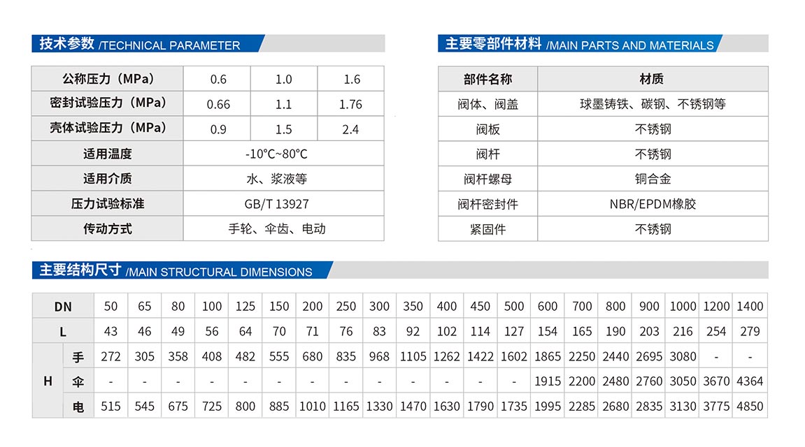 6、閥體內外涂覆環(huán)氧樹脂層,閥板緊固件采用不銹鋼,密封件為丁腈橡膠,防腐性能好。
